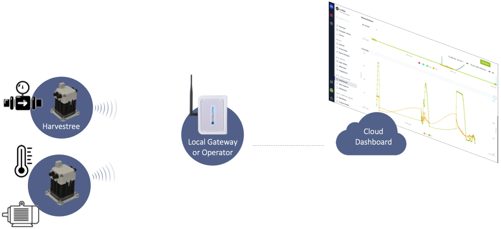 Harvestree primarily uses LoRaWAN (Long-Range Wide-Area Network), offering extended connectivity and bidirectional communication. The robust energy generation supports high-frequency transmission (less than 1 minute) and is ready for integration with other protocols, including 2.4 GHz, Bluetooth, NB-IoT, LTE-M, and 5G